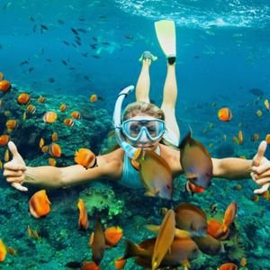 After breakfast, if you are up to it, join with a Snorkeling trip. It is a fun and relaxing way to view the colorful and fascinating world just beneath the ocean’s surface. snorkelers use a clear plastic mask and a short tube to breathe while floating face-down on the surface of the water. This way you can observe coral and marine life without scaring away the fish with your movements and without having to come up for air every minute. Just floating and being immersed within the underwater scenery is enough to escape the hurdles we encountered in everyday life. There are different locations where you see a totally different environment with different fishes and sea creatures. NOTE: This is an optional experience, thus you can be purchased separately from the Resort.
